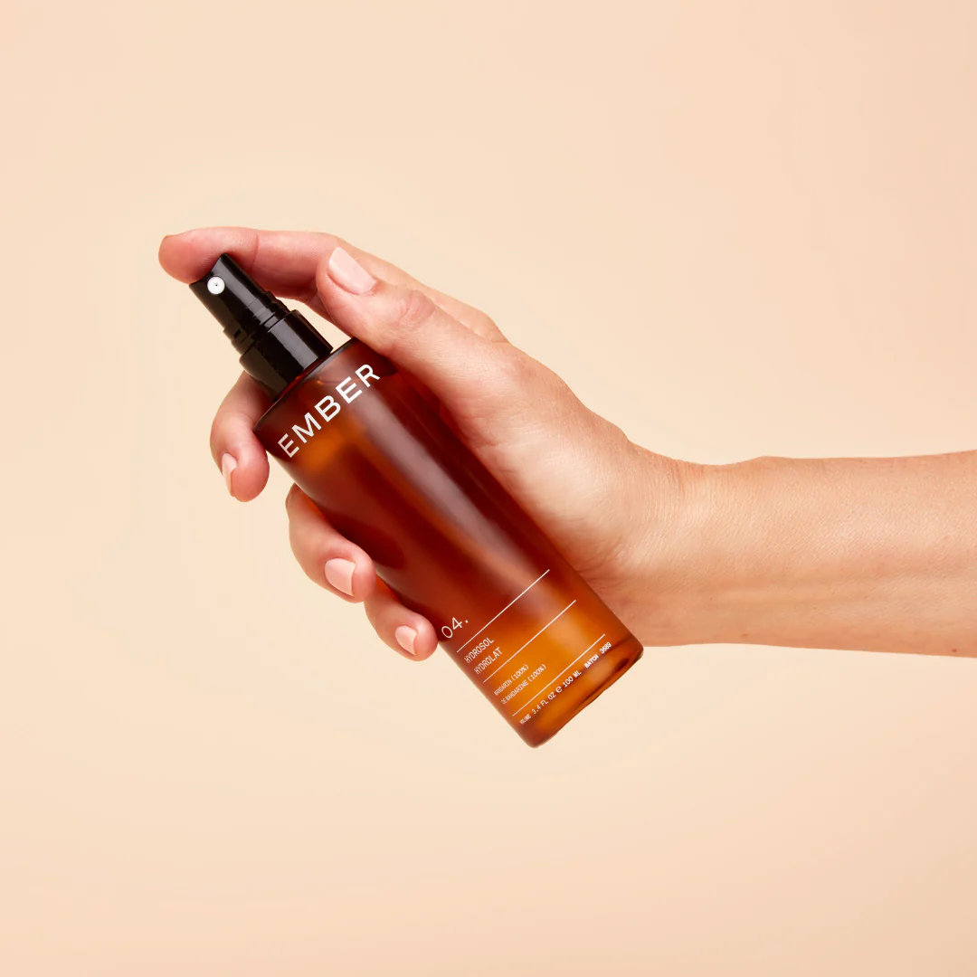 Instantly delivery a joyful spritz of hydrating and thirst quenching moisture to the face, neck and décolletage any time of day using the 04 hydrosol from Ember Wellness.